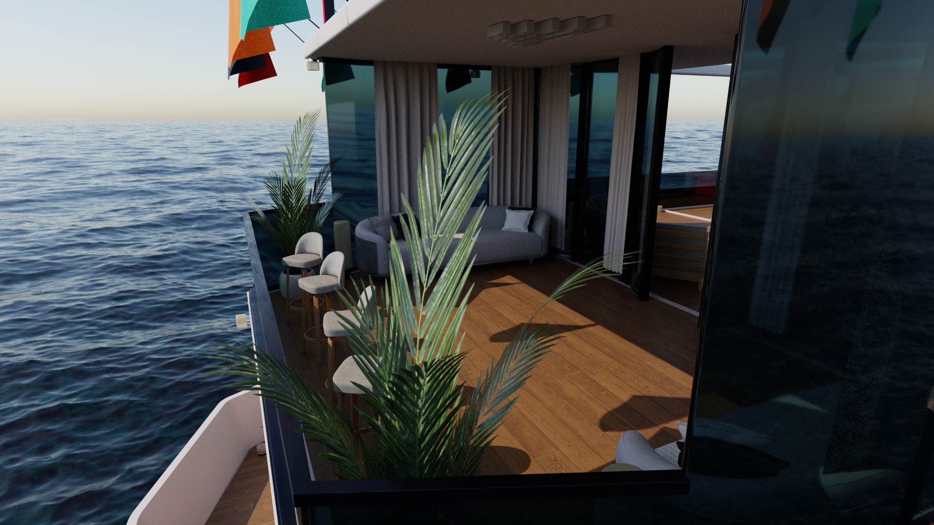 Elevate your experience, with a private area of 40 sqm including a viewing deck accommodating 20 guests per day & night, with fully customizable furniture, decor and branding.